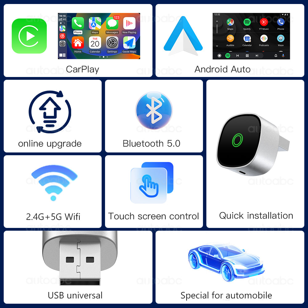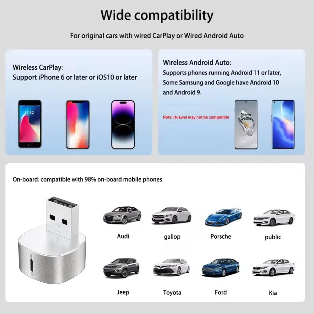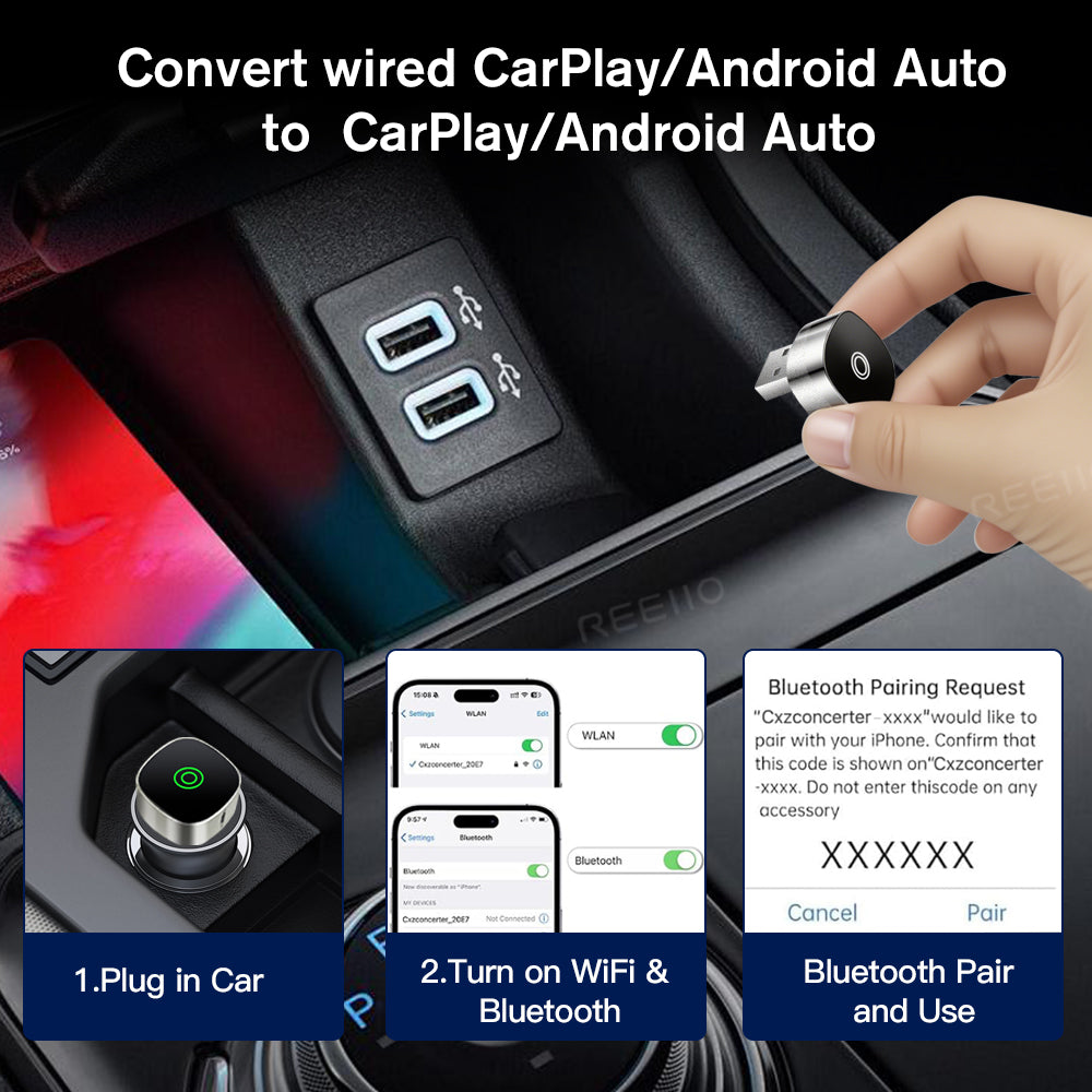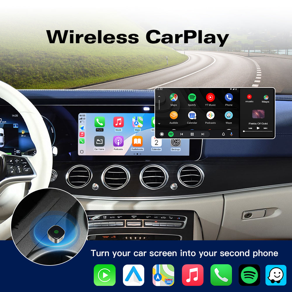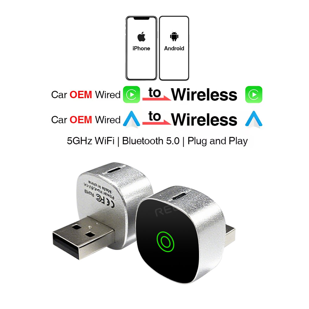 Tired of plugging in your phone every time you drive? This 2-in-1 wireless adapter eliminates cables, letting you connect instantly via Bluetooth & Wi-Fi for CarPlay or Android Auto.