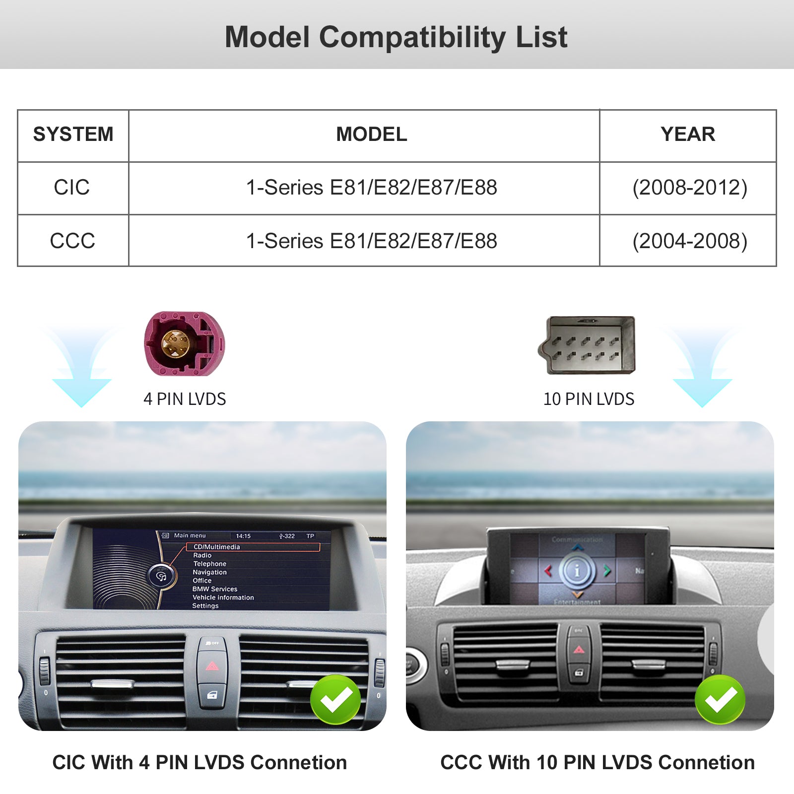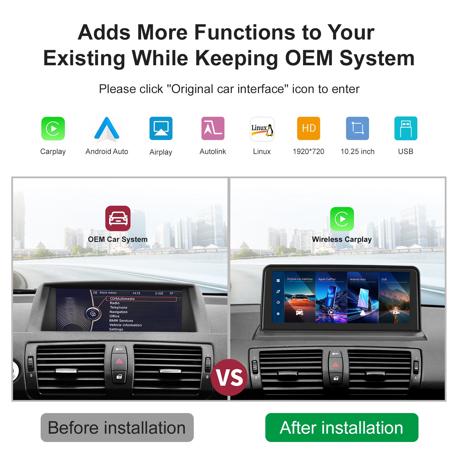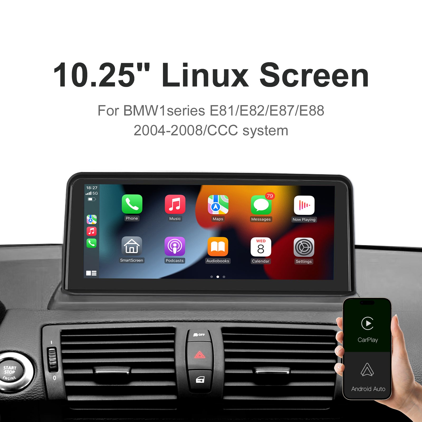 10.25 inch Wireless CarPlay Android Auto Linux Mutilmedia Screen Compatible With 1 Series E82 E87 E88 (2004-2012)