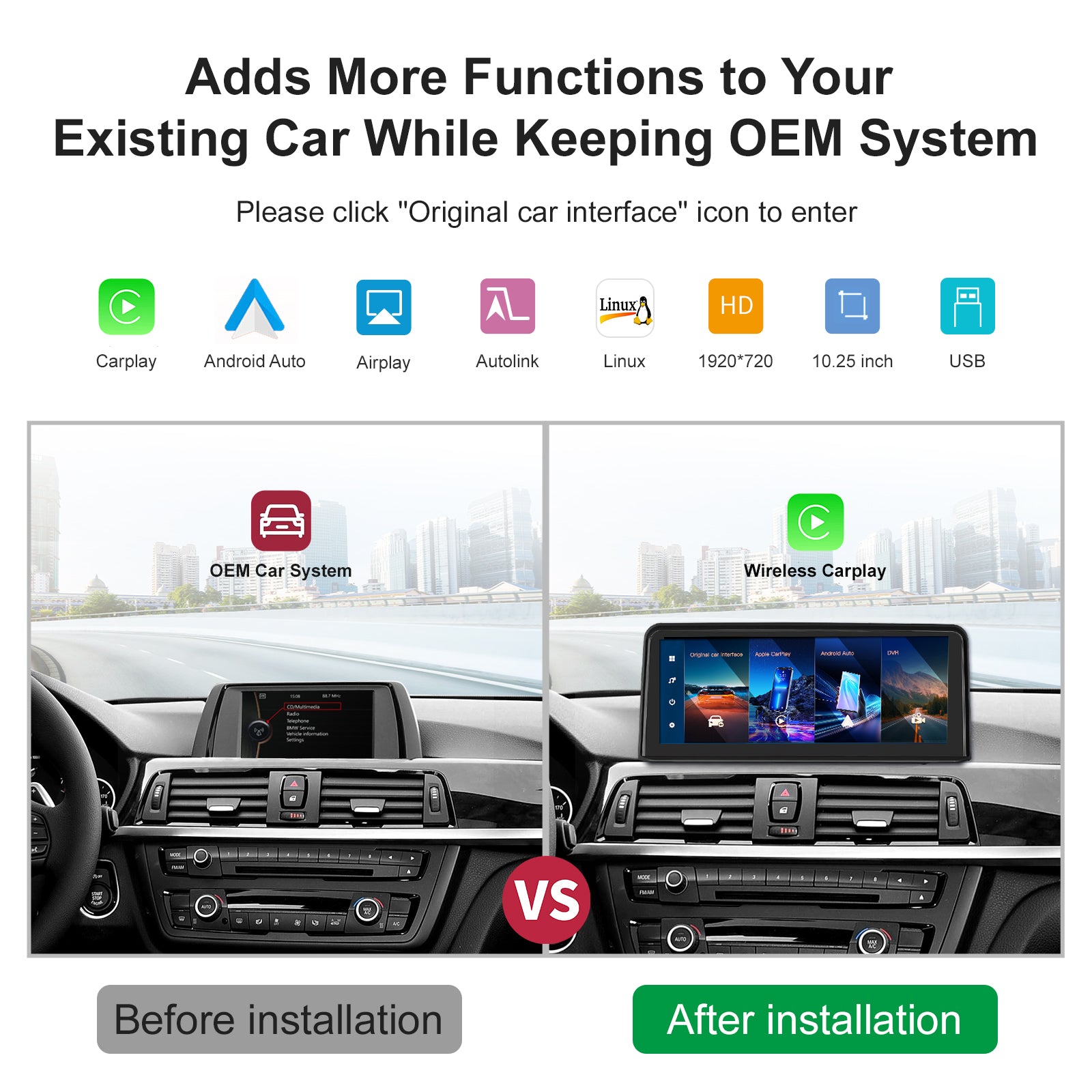 10.25 inch Wireless CarPlay Android Auto Linux Multimedia Screen Compatible With BMW 3/4 Series F30~F33 (2012-2016)