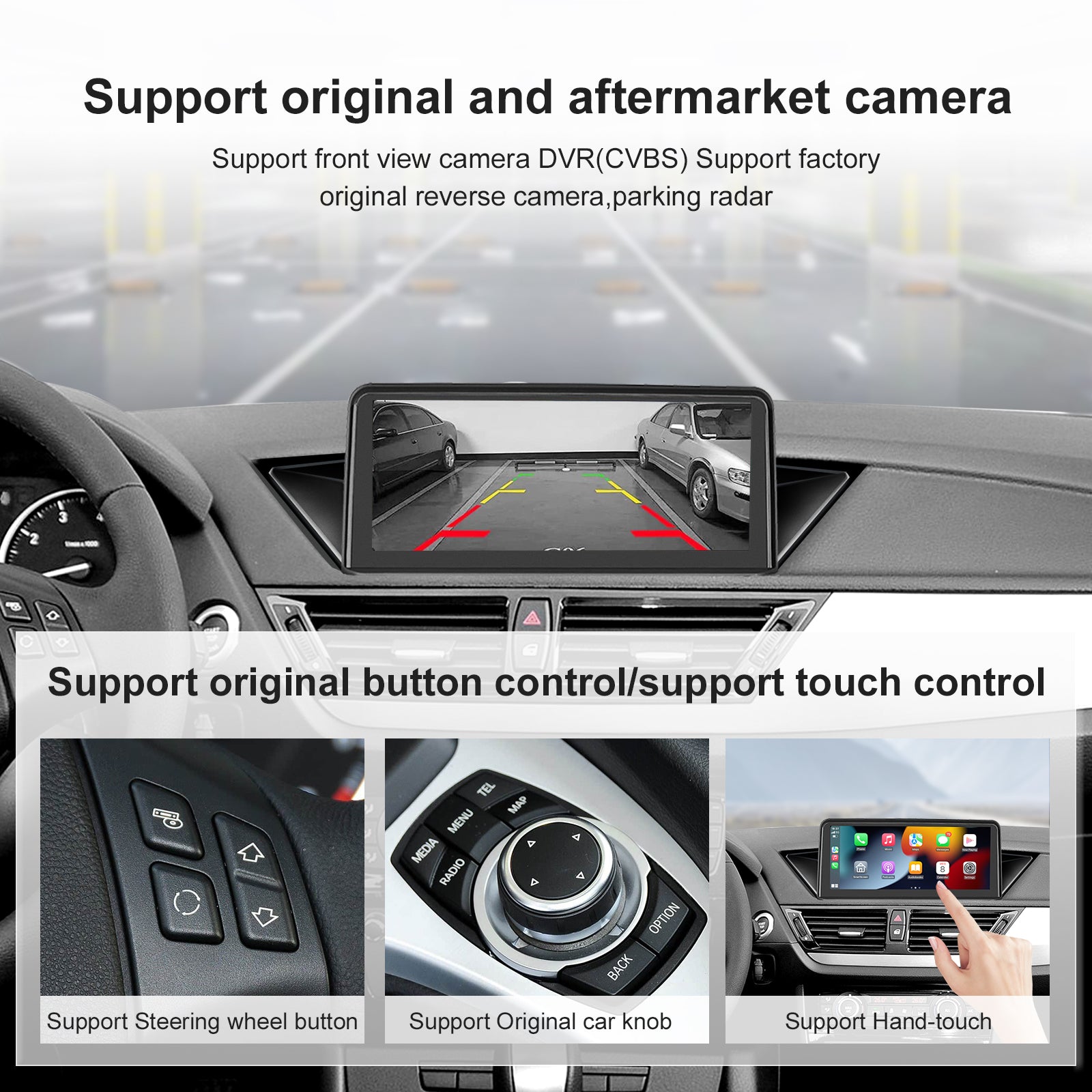 - The screen supports touch control on non-original car interfaces, and the original car interface needs to be controlled with the knob.