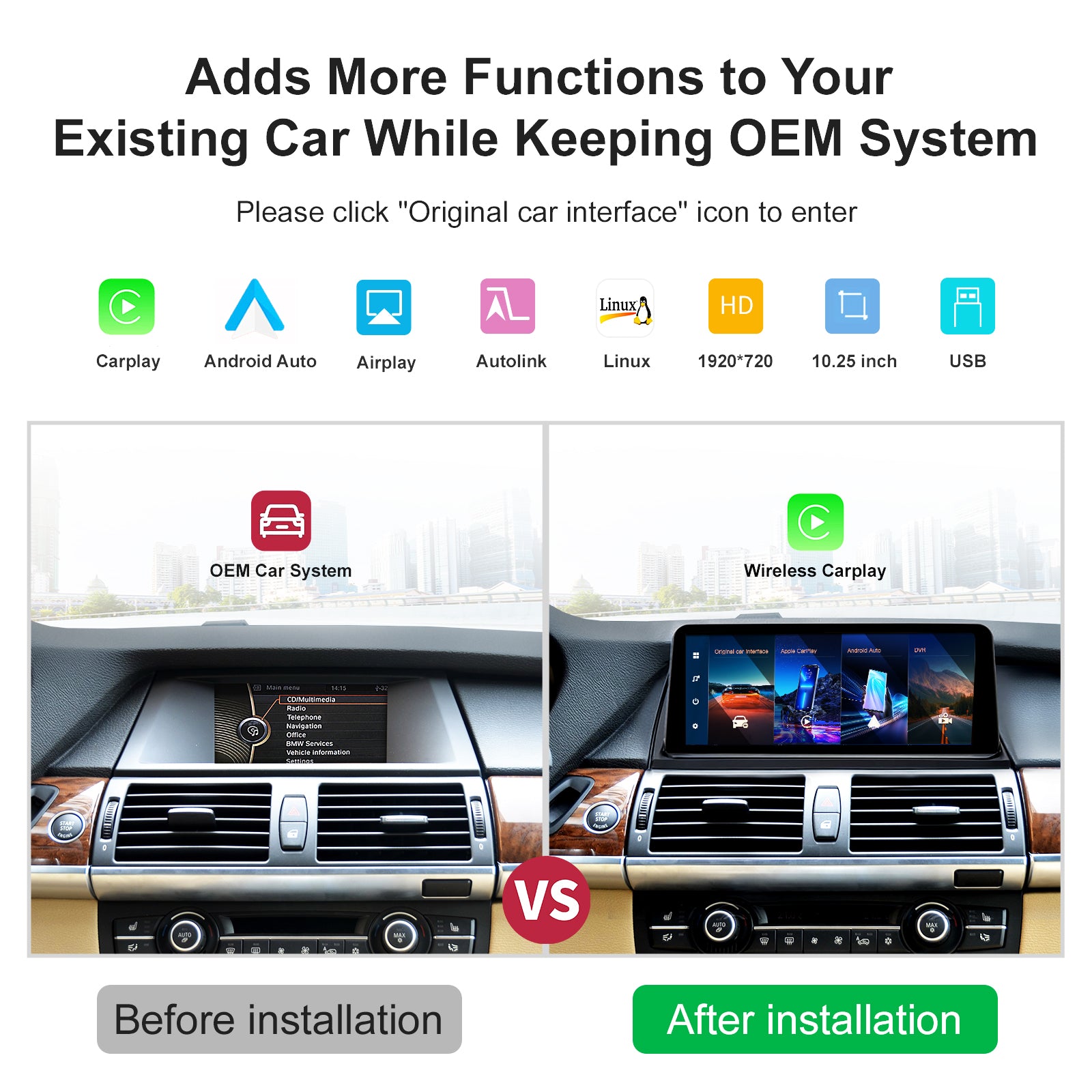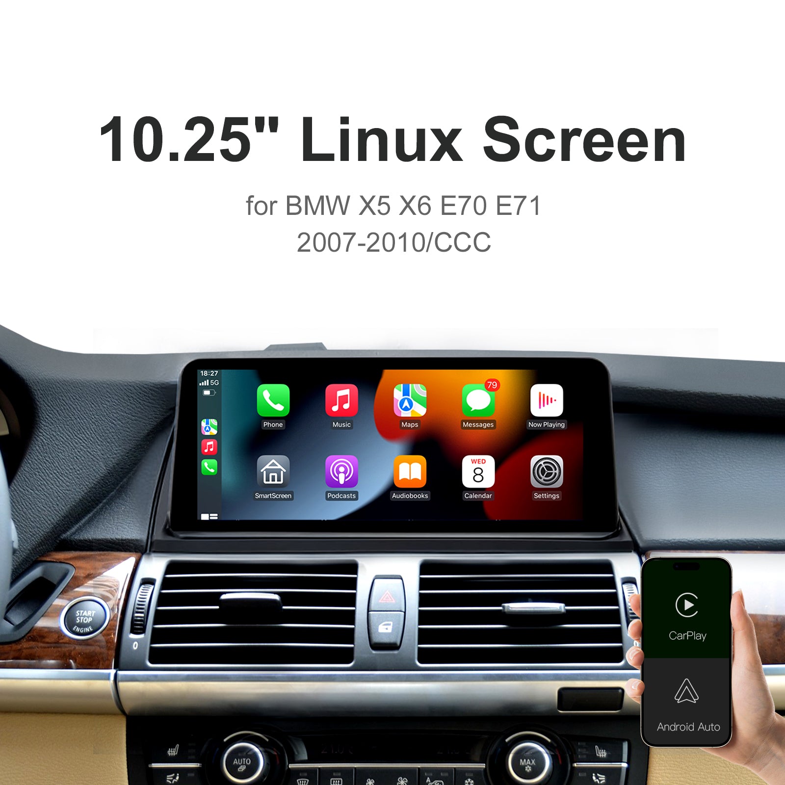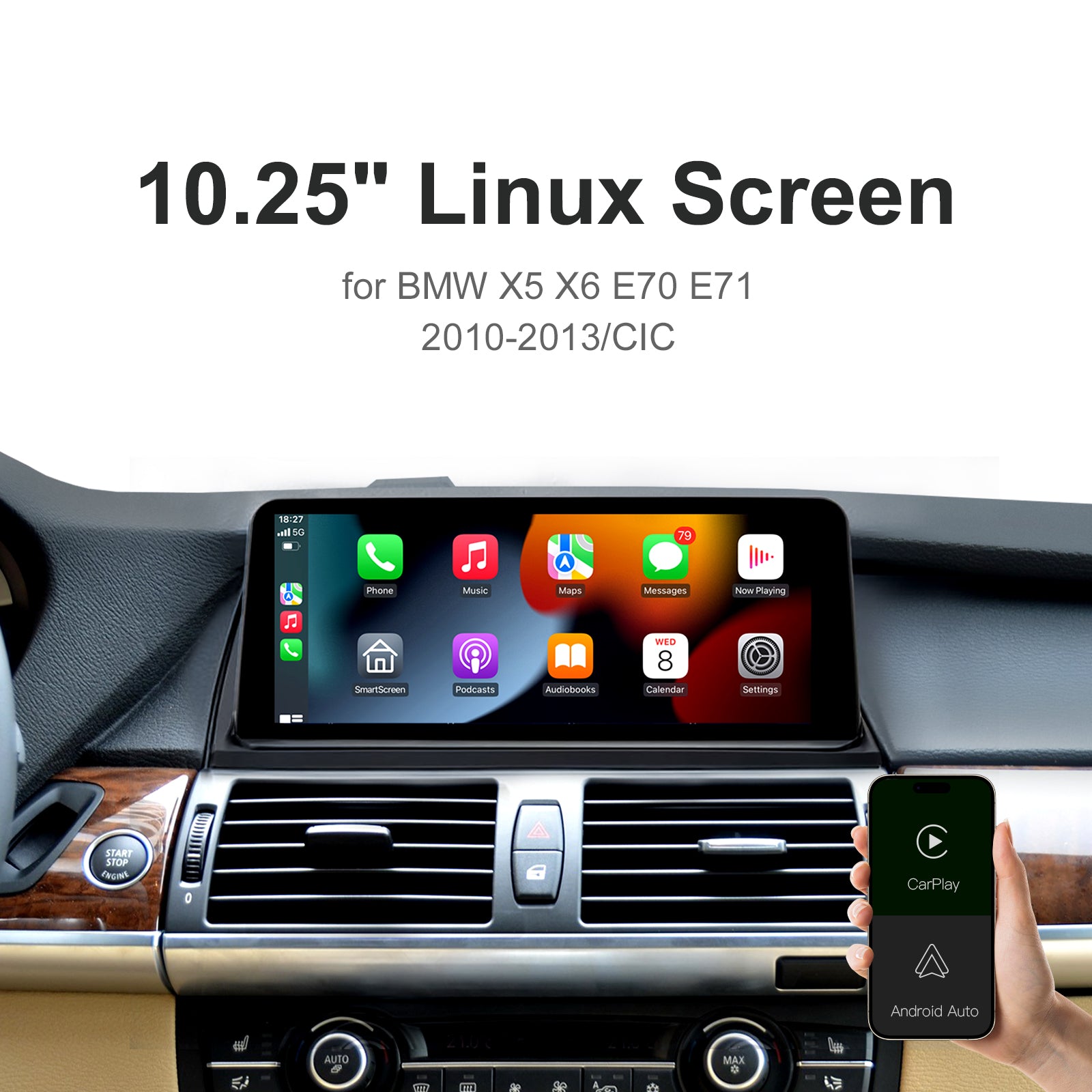 10.25 inch Wireless CarPlay Android Auto Linux Multimedia Screen Compatible With BMW X5 X6 E70 E71 (2007-2017)