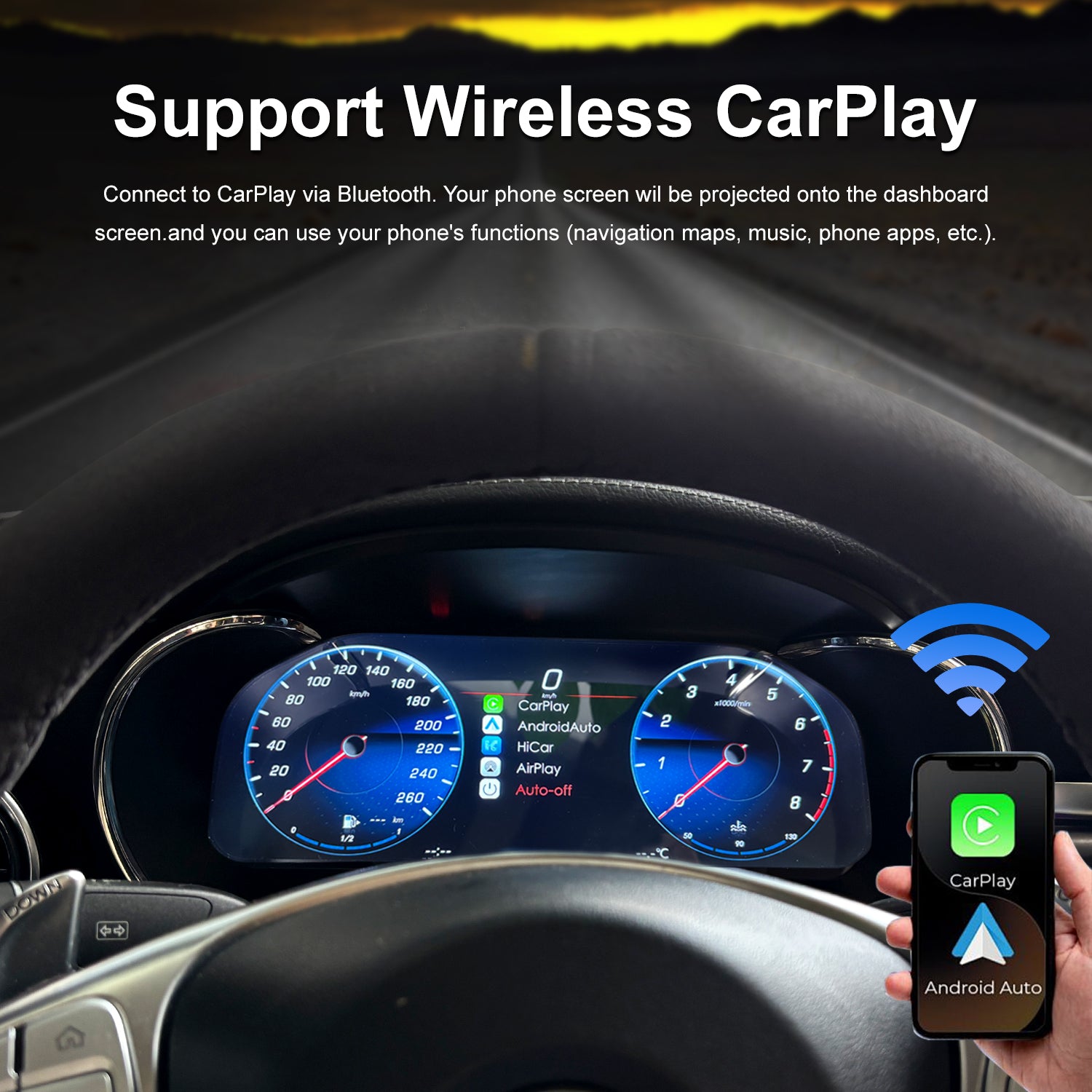 • Supports Wireless Carplay Andorid Auto, Google Maps, Amap, etc.