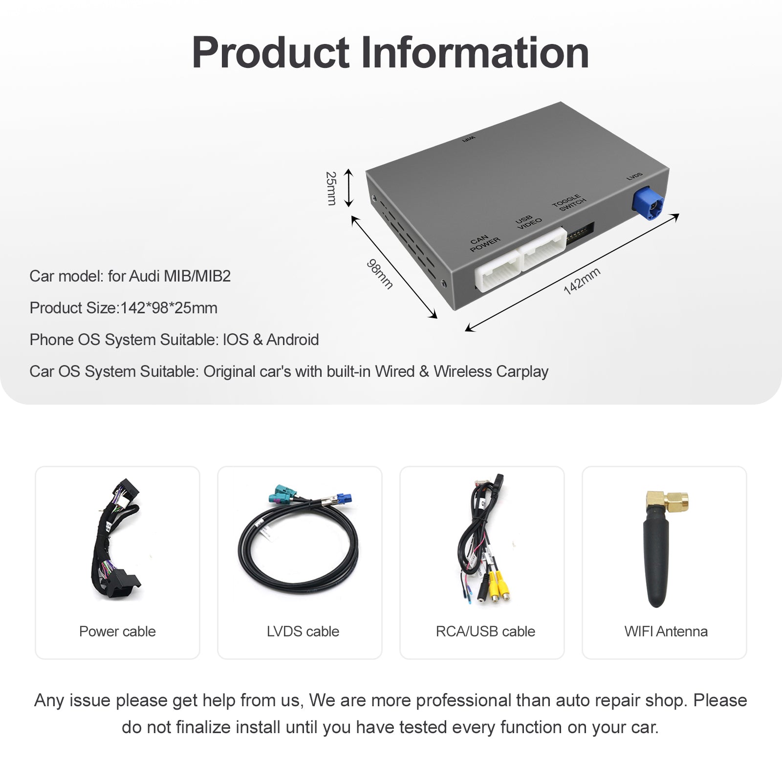 Wireless CarPlay Android Auto Retrofit Compatible With Audi with MIB MMI system